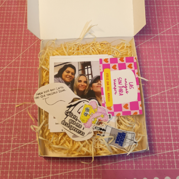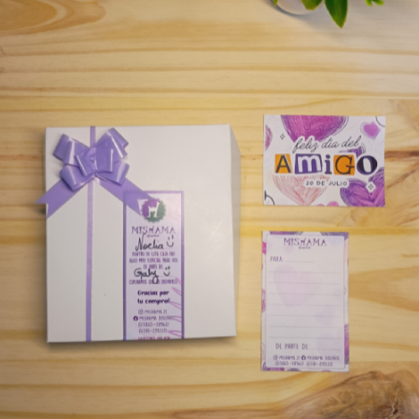 💝 1 Packagin con hermosa presentación: caja + tarjeta feliz día del amigo + stiker cierra caja (14cm x 13cm)